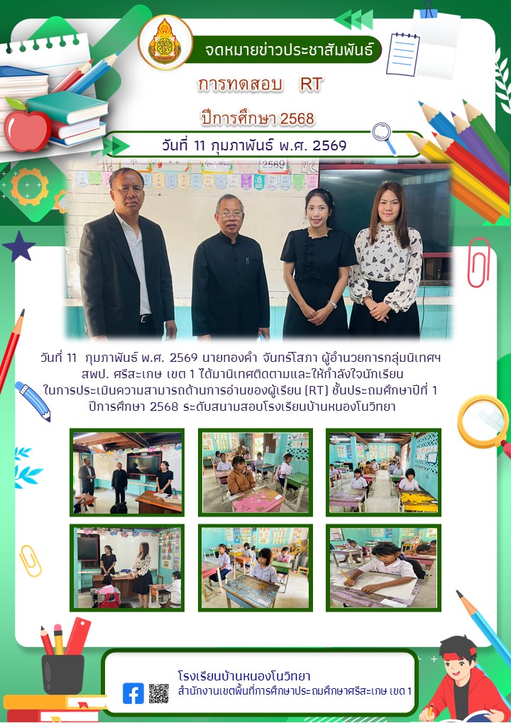 ปีการศึกษา 2568 ระดับสนามสอบโรงเรียนบ้านหนองโนวิทยา