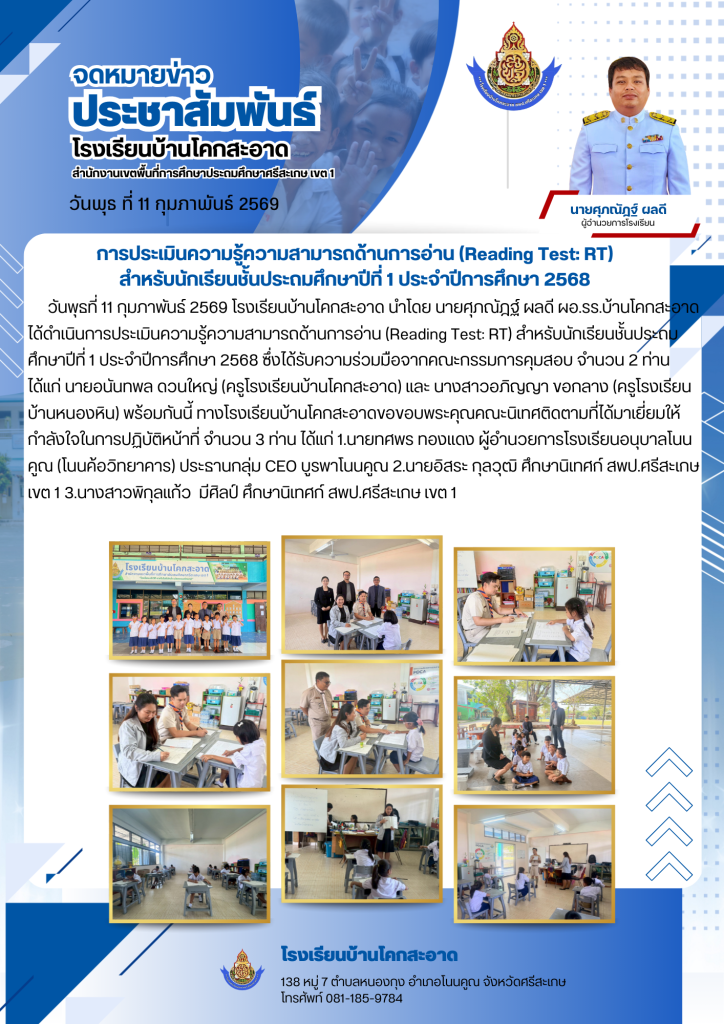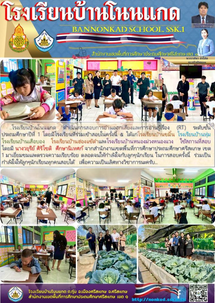 ในการประเมินความสามารถด้านการอ่านของผู้เรียน (RT) ชั้นประถมศึกษาปีที่ 1