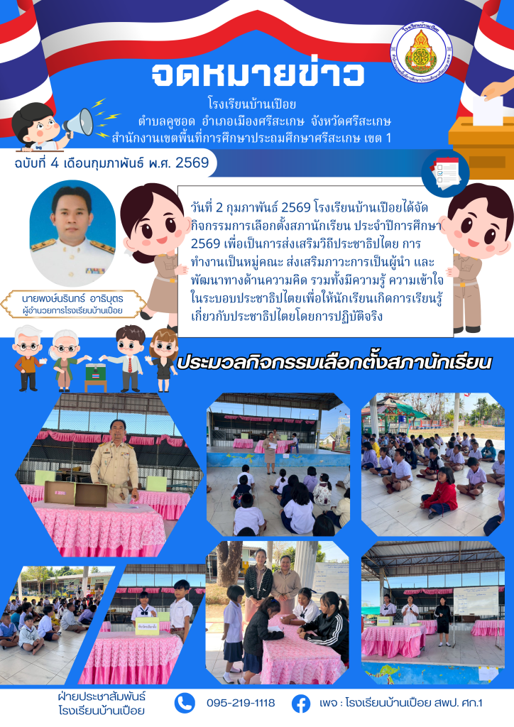 เมื่อวันที่ 6 กุมภาพันธ์ 2569 โรงเรียนบ้านสบาย นำโดยนายอภิชาติ เอี่ยมสะอาด ผู้อำนวยการโรงเรียน นางสาวอิสราวรรณ์ จันทร์เพ็ญ รองผู้อำนวยการโรงเรียน คณะครูและนักเรียน ได้ร่วมจัดกิจกรรมเดินขบวนรณรงค์กิจกรรมการเลือกตั้ง เดินรณรงค์และประชาสัมพันธ์เชิญชวนให้ประชาชน ออกไปใช้สิทธิเลือกตั้งสมาชิกสภาผู้แทนราษฎรและการออกเสียงประชามติ