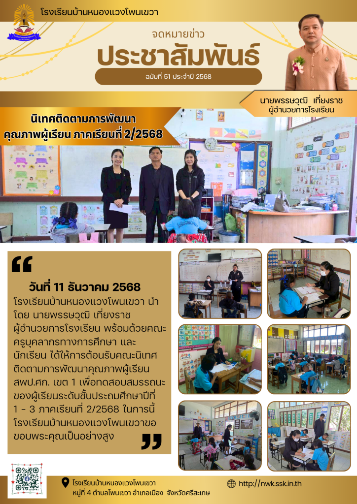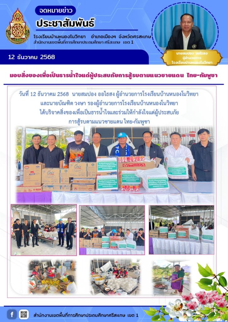 วันที่ 12 ธันวาคม 2568 นายสมปอง ออไธสง ผู้อำนวยการโรงเรียนบ้านหนองโนวิทยา