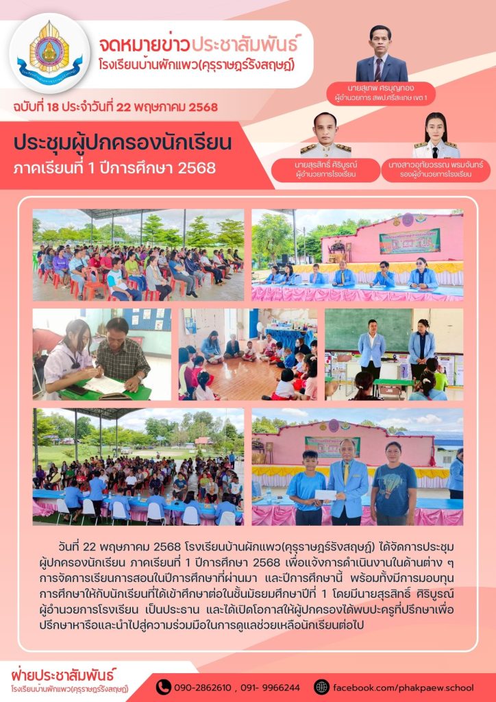 วันที่ 18 กรกฎาคม 2567 สำนักงานคณะกรรมการการศึกษาขั้นพื้นฐานร่วมกับธนาคารออมสิน ได้จัดประชุมเพื่อติดตามและประเมินผลโรงเรียนบ้านผักแพว(คุรุราษฎร์รังสฤษฏ์) โครงการอิ่มนี้เพื่อน้อง ประจำปี 2567 ครูผู้รับผบโครงการนี้ได้แก่ นางสาวบุญเรือง พาวัน ครูชำนาญการพิเศษ และคณะ
