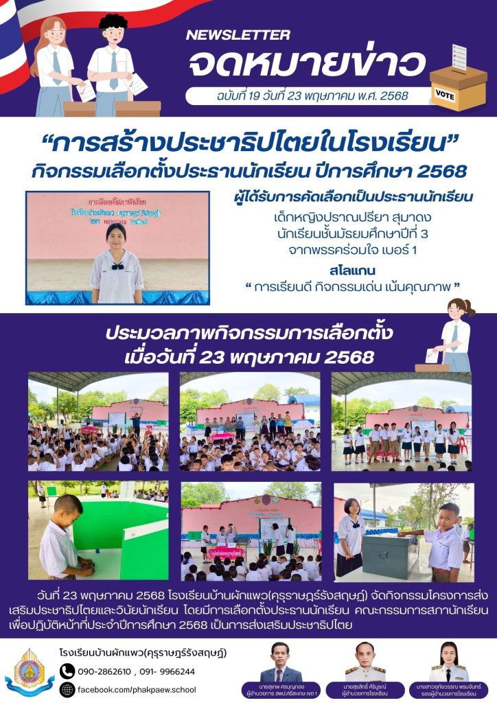 วันที่ ๒๖ กรกฏาคม ๒๕๖๗ นายสุรสิทธิ์ ศิริบูรณ์ ผู้อำนวยการโรงเรียนบ้านผักแพว(คุรุราษฎร์รังสฤษฏ์) คณะครู บุคลากร และนักเรียน จัดกิจกรรมถวายพระพรชัยมงคล ปลูกต้นไม้ และจิตอาสาบำเพ็ญประโยชน์ เนื่องในวัิมพระชนมพรรษาครบ ๖ รอบ ๒๘ กรกฏาคม ๒๕๖๗ เพื่อแสดงความจงรักภักดีและสำนึกในพระมหากรุณาธิคุณเป็นล้นพ้น