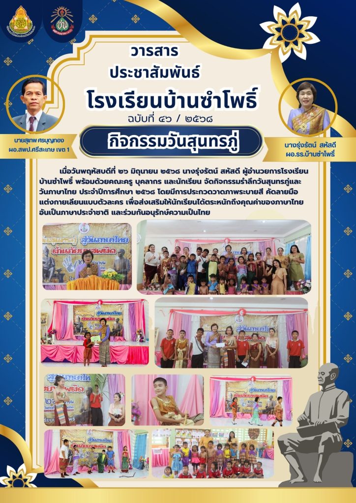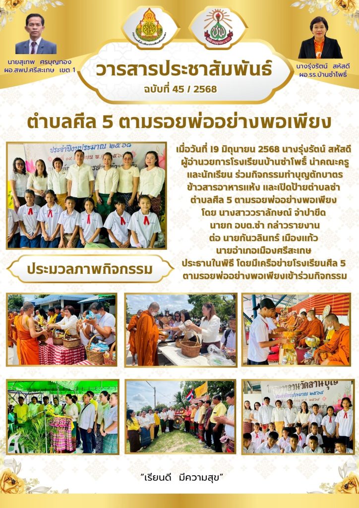 เมื่อเวลา ๐๙.๐๐ น. วันที่ ๑๗ กรกฎาคม ๒๕๖๘ ผู้อำนวยการทิวา รุ้งแก้ว ประธานชมรมคนรักในหลวง จังหวัดศรีสะเกษ และนายกพุทธสมาคมจังหวัดศรีสะเกษ ประธานในพิธีทำบุญตักบาตร ในวาระครบรอบ ๘๙ ปี ก่อตั้งโรงเรียนบ้านซำโพธิ์ โดยประธานฝ่ายสงฆ์ พระครูโพธิสิริสารธรรม เจ้าคณะตำบลซำ และผู้ช่วยเจ้าอาวาส วัดเจียงอี ศรีมงคลวราราม พระอารามหลวง พร้อมด้วย พระสงฆ์จำนวน ๑๕ รูป รับบิณฑบาตข้าวสารอาหารแห้ง