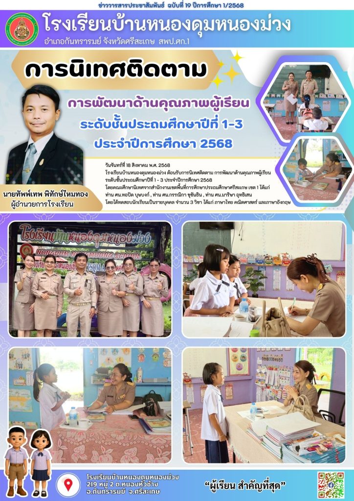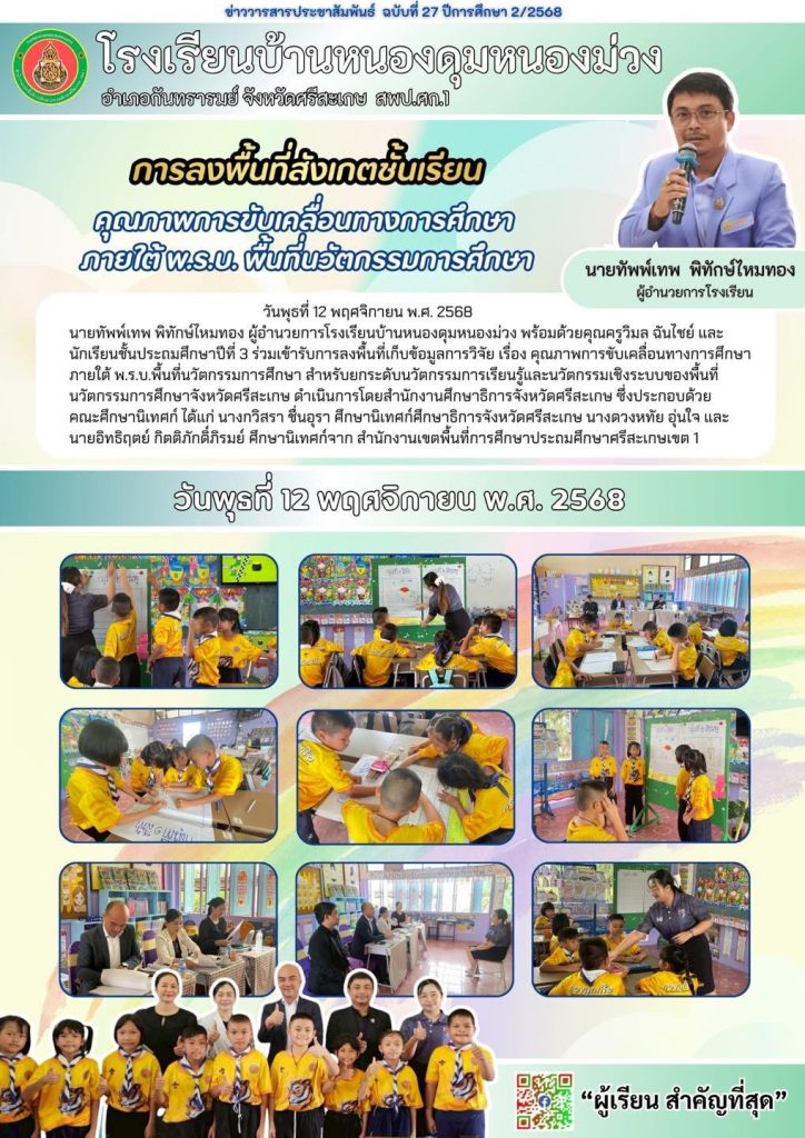 รร.บ้านหนองดุมหนองม่วง เข้ารับการลงพื้นที่โดยคณะศึกษานิเทศก์ เพื่อเก็บข้อมูลการวิจัยเพื่อขับเคลื่อนการศึกษา ภายใต้ พ.ร.บ.พื้นที่นวัตกรรมการศึกษา ดำเนินการโดย สำนักงานศึกษาธิการจังหวัดศรีสะเกษ