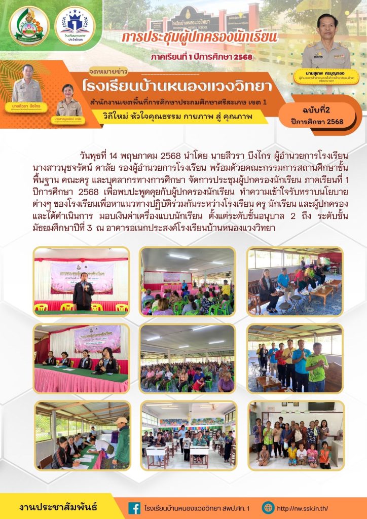 การประชุมผู้ปกครองนักเรียน ภาคเรียนที่ 1 ปีการศึกษา 2568