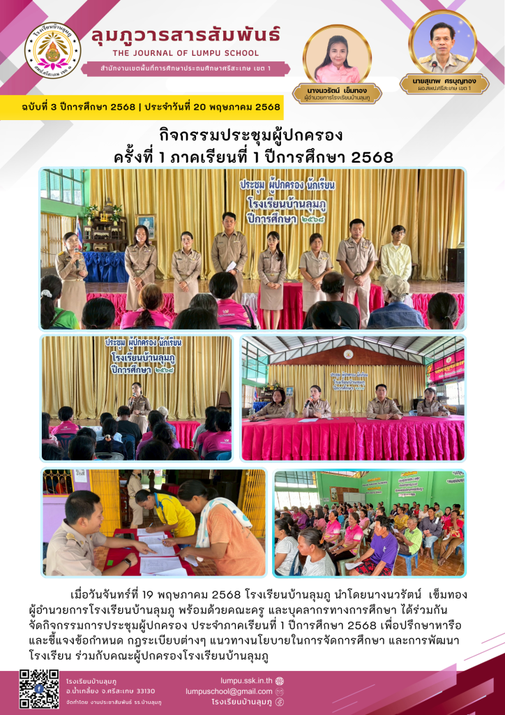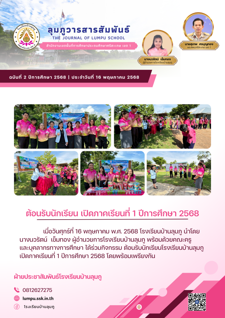 ในวันศุกร์ที่ 30 พฤษภาคม 2568 โรงเรียนบ้านลุมภู นำโดย นางนวรัตน์ เข็มทอง ผู้อำนวยการโรงเรียนบ้านลุมภู พร้อมด้วยคณะครู บุคลากรทางการศึกษา และนักเรียน ได้ร่วมกันจัดกิจกรรม “รณรงค์วันงดสูบบุหรี่โลก” และ “รณรงค์กำจัดแหล่งเพาะพันธ์ุลูกน้ำยุงลาย ป้องกันโรคไข้เลือดออก” เพื่อเผยแพร่ประชาสัมพันธ์ แนวทางการป้องกันเด็กและเยาวชนให้ห่างไกลจากการใช้บุหรี่ และบุหรี่ไฟฟ้ารวมถึงการป้องกันการแพร่ระบาดของโรคไข้เลือดออก