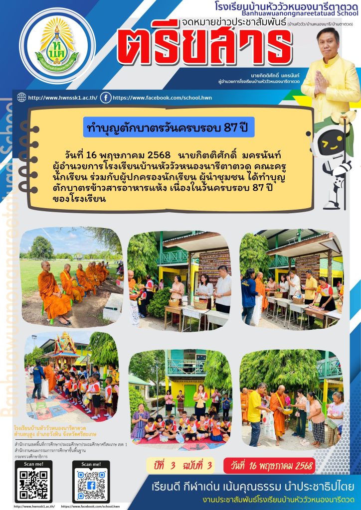 ทำบุญตักบาตร ครบรอบ 87 ปี โรงเรียนบ้านหัววัวหนองนารีตาตวด