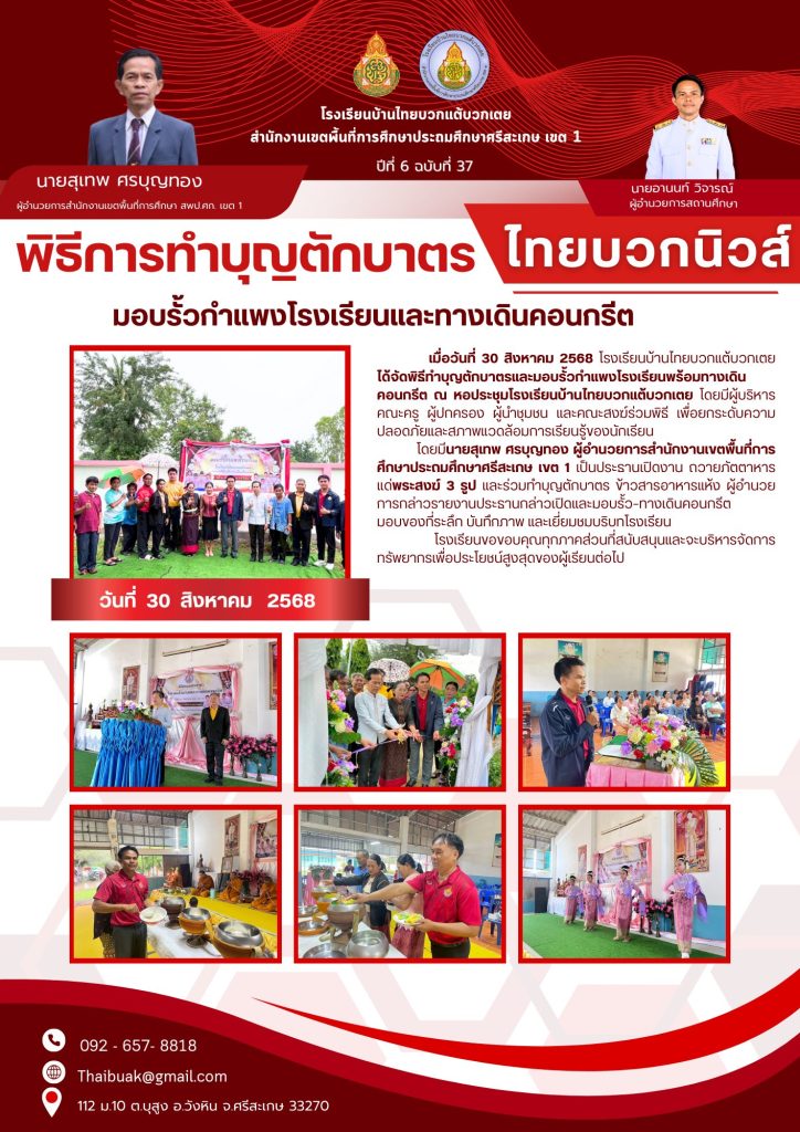 พิธีทำบุญตักบาตรและกิจกรรมมอบรั้วกำแพงโรงเรียนและทางเดินคอนกรีต