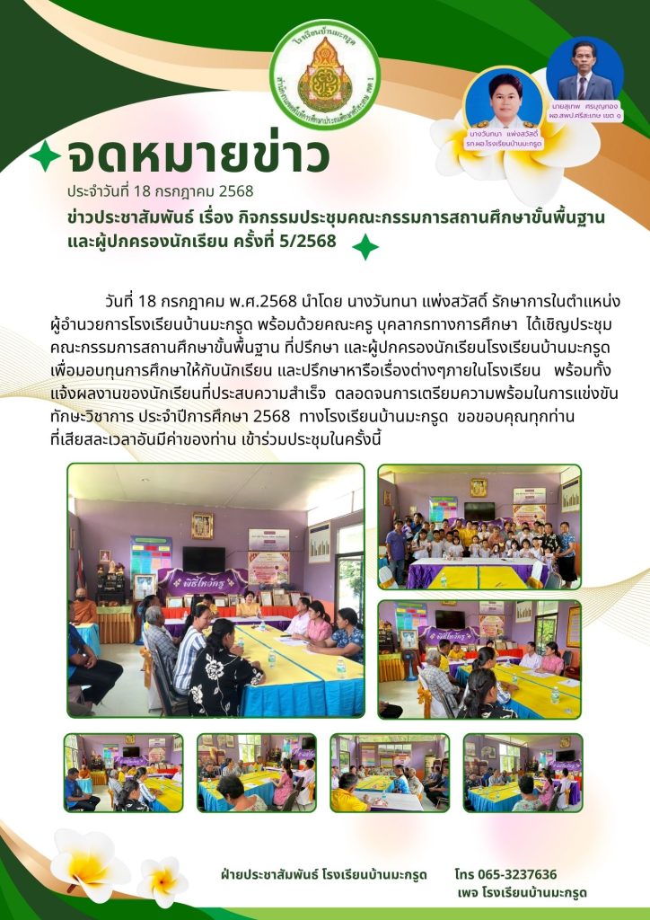 ประชาสัมพันธ์ เรื่องประชุมคณะกรรมการสถานศึกษา ที่ปรึกษา และผู้ปกครองนักเรียน ครั้งที่5/2568
