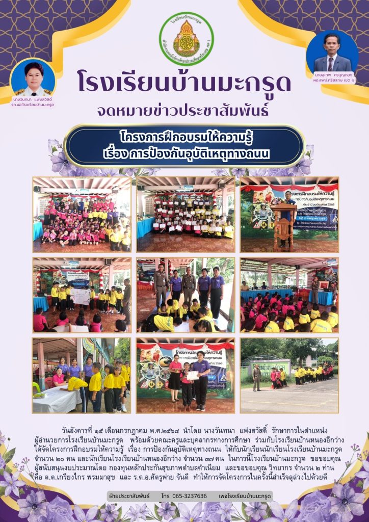 ประชาสัมพันธ์ เรื่องโครงการฝึกอบรมให้ความรู้ การป้องกันอุบัติเหตุทางถนน ปีงบประมาณ2568