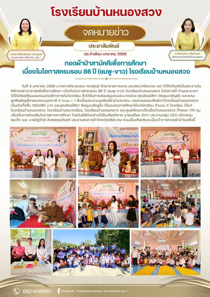 เมื่อวันที่ 5 มิถุนายน พ.ศ. 2568 นายสุเทพ ศรบุญทอง ผอ.สพป.ศรีสะเกษ เขต 1, นางสาวพีระพรรณ ทองศูนย์