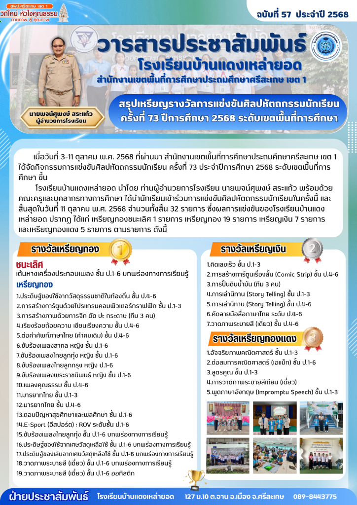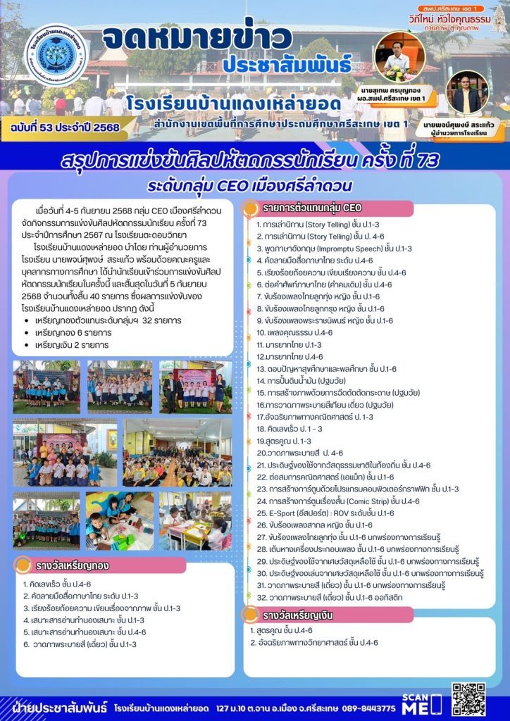 สรุปการแข่งขันศิลปหัตถกรรมนักเรียน ครั้งที่ 73 ระดับกลุ่มเมืองศรีลำดวน