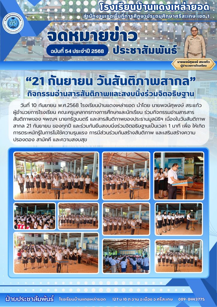 “21 กันยายน วันสันติภาพสากล” กิจกรรมอ่านสารสันติภาพและสงบนิ่งร่วมจิตอธิษฐาน