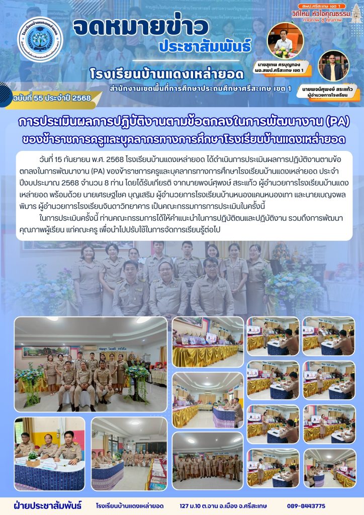 การประเมินผลการปฏิบัติงานตามข้อตกลงในการพัฒนางาน (PA)ของข้าราชการครูและบุคลากรทางการศึกษา