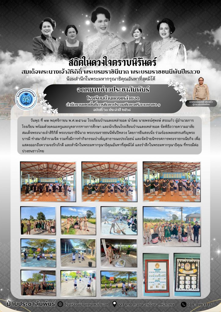 โรงเรียนบ้านแดงเหล่ายอด จัดพิธีถวายความอาลัยสมเด็จพระนางเจ้าสิริกิติ์ พระบรมราชินีนาถ พระบรมราชชนนีพันปีหลวง