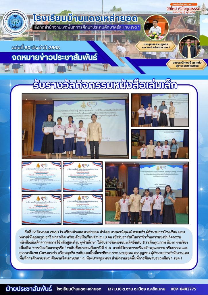 โรงเรียนบ้านแดงเหล่ายอด รับรางวัลกิจกรรมหนังสือเล่มเล็ก