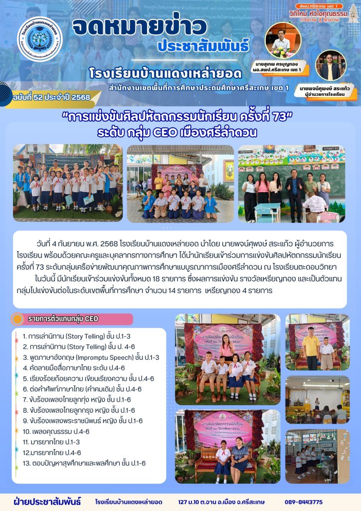 การแข่งขันศิลปหัตถกรรมนักเรียน ครั้งที่ 73 ระดับกลุ่มเมืองศรีลำดวน