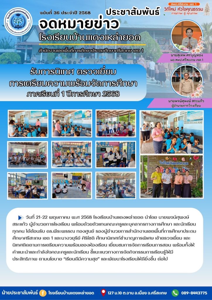 โรงเรียนบ้านแดงเหล่ายอด รับการนิเทศ ตรวจเยี่ยม เตรียมความพร้อมเปิดภาคเรียนที่ 1 ปีการศึกษา 2568