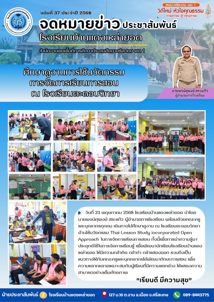โรงเรียนบ้านแดงเหล่ายอดศึกษาดูงานการใช้นวัตกรรมการจัดการเรียนการสอน ณ โรงเรียนตะดอบวิทยา