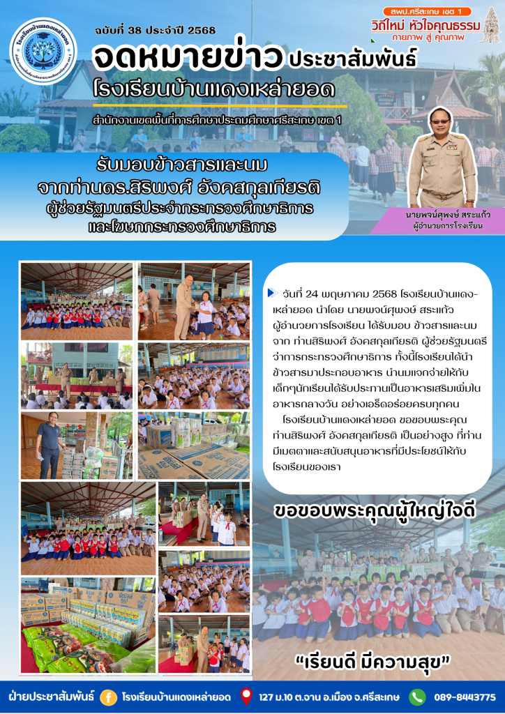 โรงเรียนบ้านแดงเหล่ายอด รับมอบข้าวสารและนมจากท่านดร.สิริพงศ์ อังคสกุลเกียรติ ผู้ช่วยรัฐมนตรีประจำกระทรวงศึกษาธิการ และโฆษกกระทรวงศึกษาธิการ