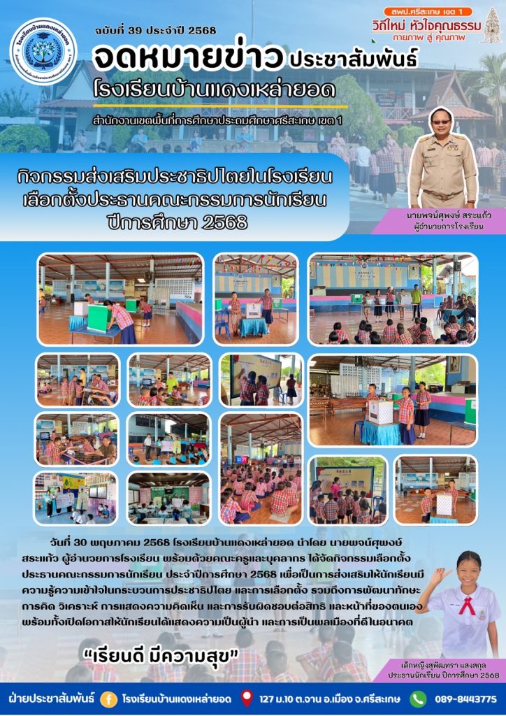 โรงเรียนบ้านแดงเหล่ายอด ส่งเสริมประชาธิปไตยโรงเรียน ด้วยการเลือกตั้งประธานคณะกรรมการนักเรียน