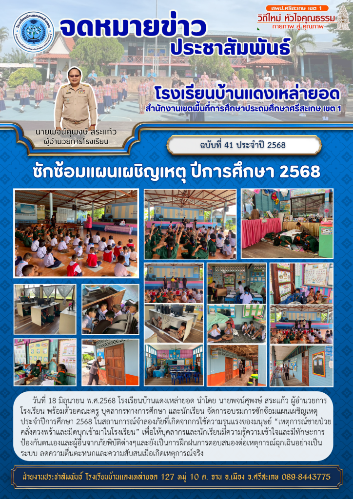 โรงเรียนบ้านแดงเหล่ายอด ได้ซักซ้อมแผนเผชิญเหตุ ปีการศึกษา 2568