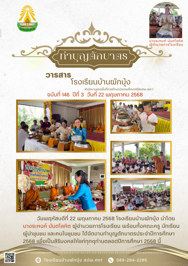 โรงเรียนบ้านผักบุ้ง กิจกรรมธรรมสัญจร