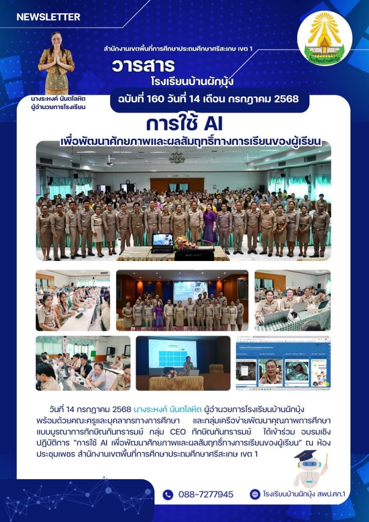 โรงเรียนบ้านผักบุ้ง การอบรมเชิงปฏิบัติการ “การใช้ AI เพื่อพัฒนาศักยภาพและผลสัมฤทธิ์ทางการเรียนรู้ของผู้เรียน”