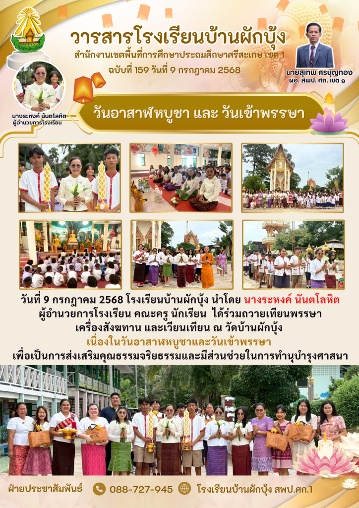 โรงเรียนบ้านผักบุ้ง วันอาสาฬหบูชา และวันเข้าพรรษา