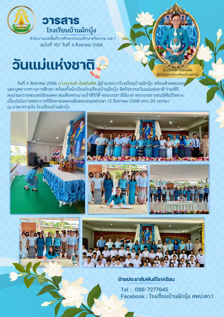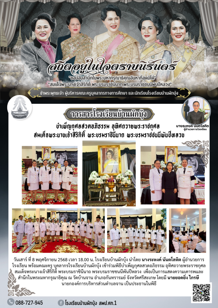 โรงเรียนบ้านผักบุ้ง ร่วมพิธีลงนามถวายพระพรชัยมงคล เนื่องในโอกาส 12 สิงหาคม 2568