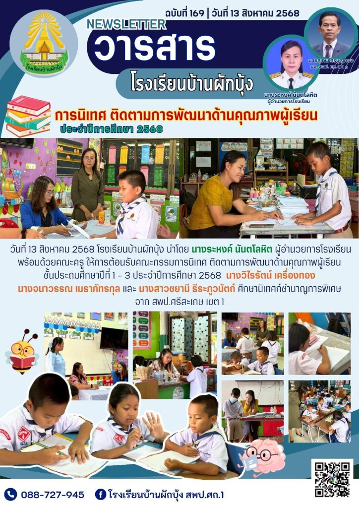 โรงเรียนบ้านผักบุ้ง รับการนิเทศติดตามการพัฒนาด้านคุณภาพผู้เรียน ประจำปี 2568