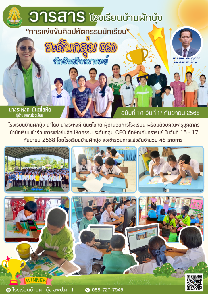 โรงเรียนบ้านผักบุ้ง การแข่งขันศิลปหัตถกรรม ครั้งที่ 73 ระดับกลุ่มCEO