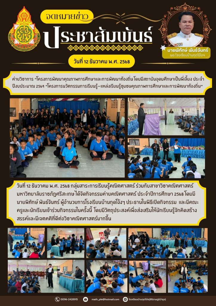 วันที่ 12 ธันวาคม 2568 นายสมปอง ออไธสง ผู้อำนวยการโรงเรียนบ้านหนองโนวิทยา