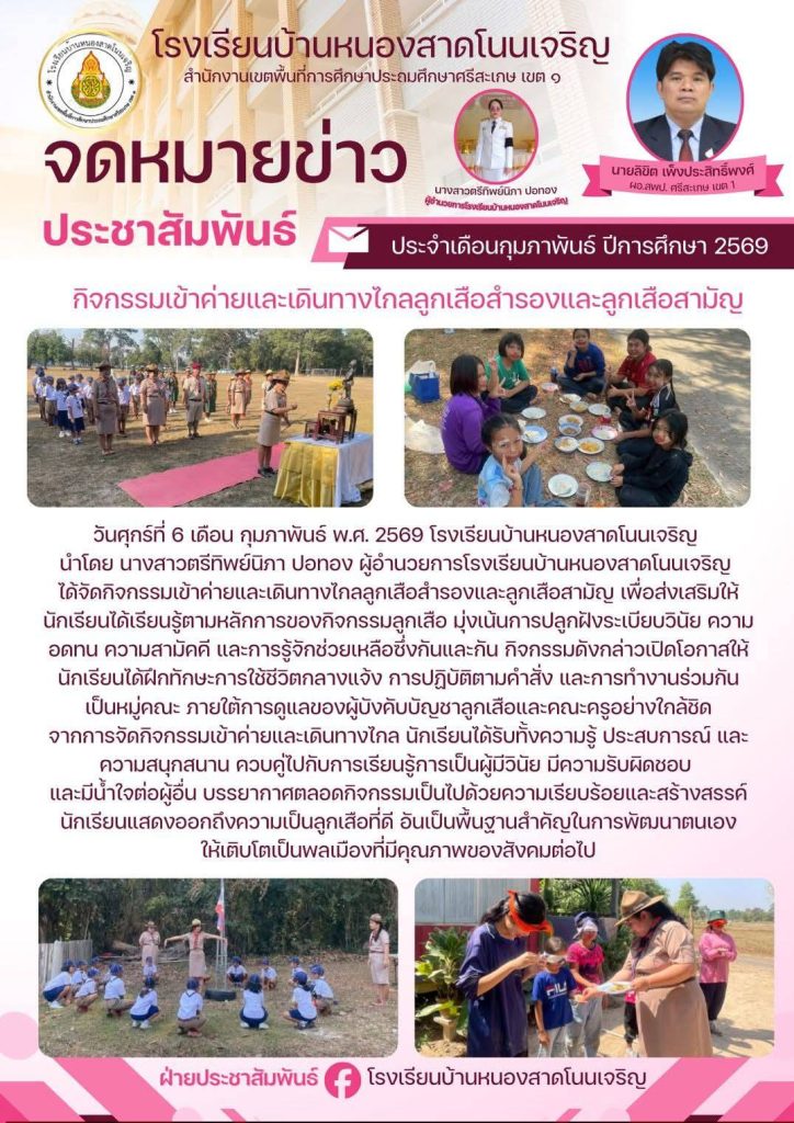 วันศุกร์ที่ 6 กุมภาพันธ์ 2569 โรงเรียนบ้านหนองดุมหนองม่วง ร่วมเดินรณรงค์การออกมาใช้สิทธิเลือกตั้งสมาชิกสภาผู้แทนราษฎร (ส.ส.) เพื่อเชิญชวนผู้มีสิทธิเลือกตั้งทุกท่าน ออกไปทำหน้าที่พลเมืองที่สำคัญ ได้แก่ การเลือกตั้งสมาชิกสภาผู้แทนราษฎร และการออกเสียงลงประชามติ ในการเลือกตั้งระดับชาติ วันที่ 8 กุมภาพันธ์ พ.ศ. 2569