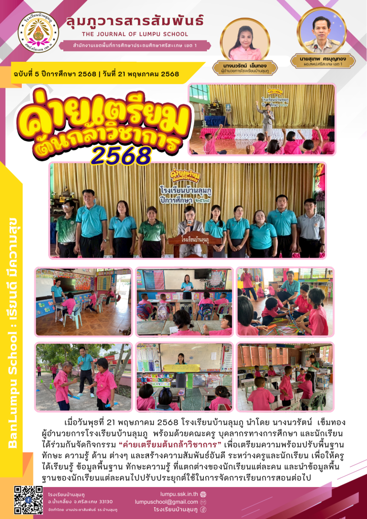 เมื่อวันพุธที่ 21 พฤษภาคม 2568 โรงเรียนบ้านลุมภู นำโดย นางนวรัตน์ เข็มทอง ผู้อำนวยการโรงเรียนบ้านลุมภู พร้อมด้วยคณะครู บุคลากรทางการศึกษา และนักเรียน