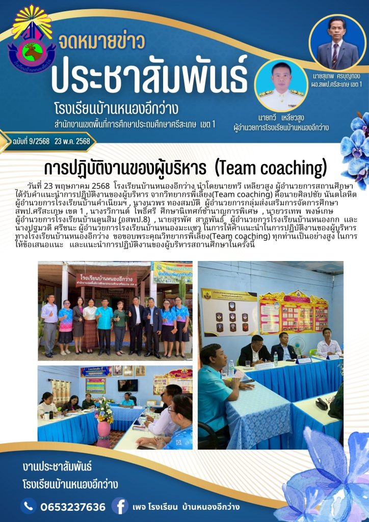 ประชาสัมพันธ์ เรื่องการปฏิบัติงานของผู้บริหาร โดยวิทยากรพี่เลี้ยง