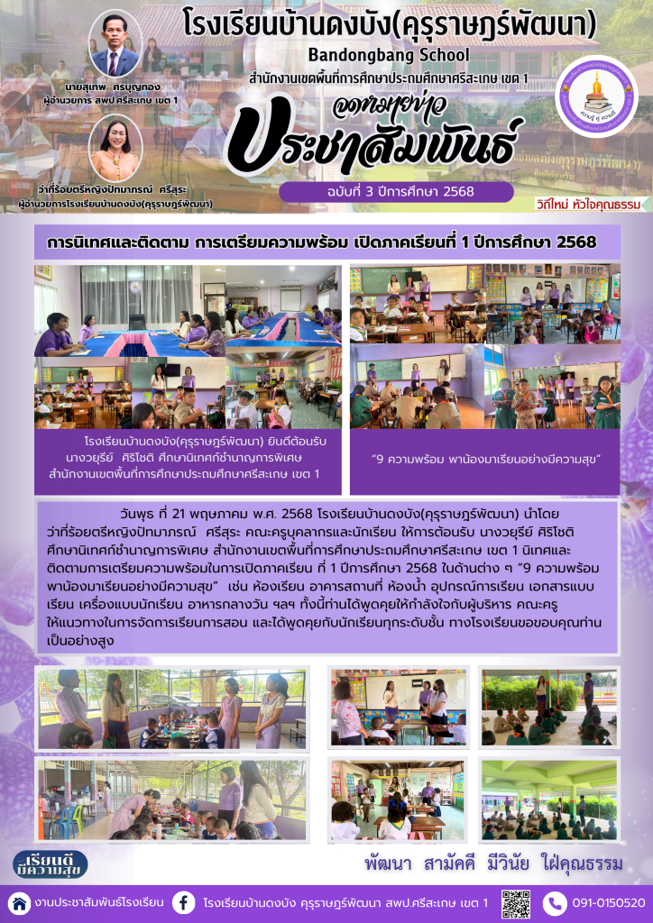การนิเทศและติดตาม การเตรียมความพร้อม เปิดภาคเรียนที่ 1 ปีการศึกษา 2568
