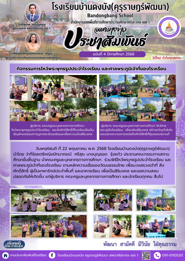กิจกรรมการไหว้พระพุทธรูปประจำโรงเรียน และศาลพระภูมิเจ้าที่ของโรงเรียน