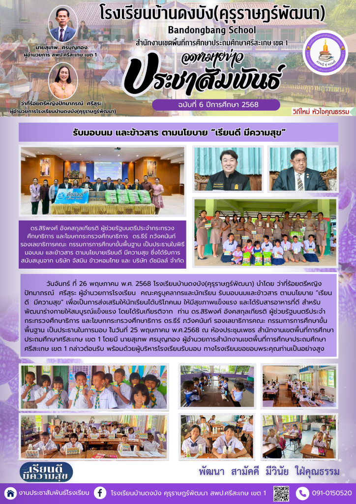 รับมอบนม และข้าวสาร ตามนโยบาย “เรียนดี มีความสุข”