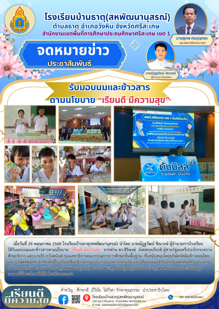 รับมอบนมและข้าวสาร ตามนโยบาย “เรียนดี มีความสุข”