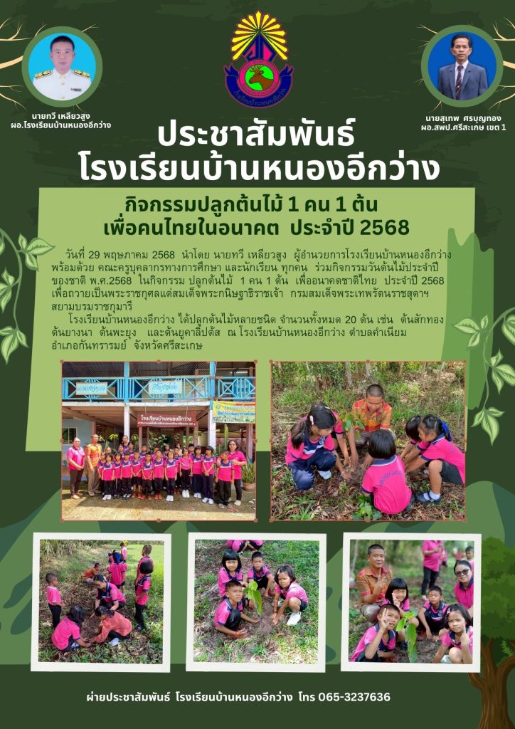ประชาสัมพันธ์ เรื่องกิจกรรมปลุกต้นไม้ 1 คน 1 ต้น เพื่อคนไทยในอนาคต ปี พ.ศ.2568