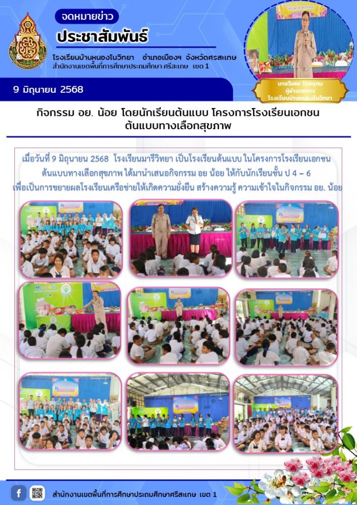 ต้นแบบทางเลือกสุขภาพ ได้มานำเสนอกิจกรรม อย น้อย ให้กับนักเรียนชั้น ป 4 – 6