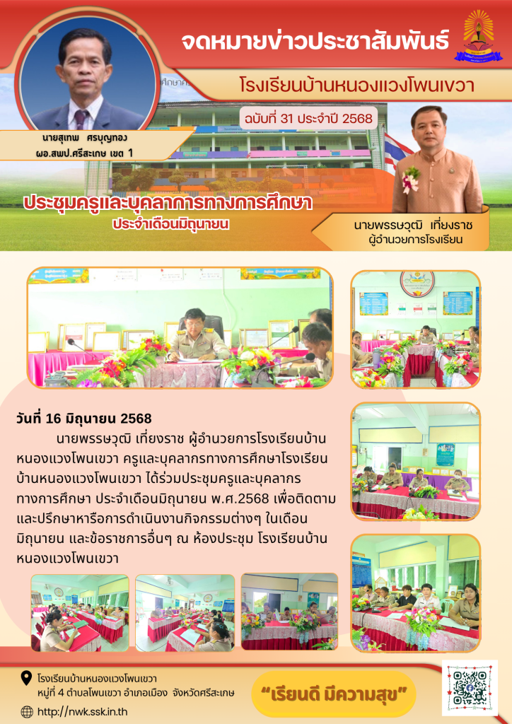 ประชุมครูและบุคลาการทางการศึกษา ประจำเดือนมิถุนายน