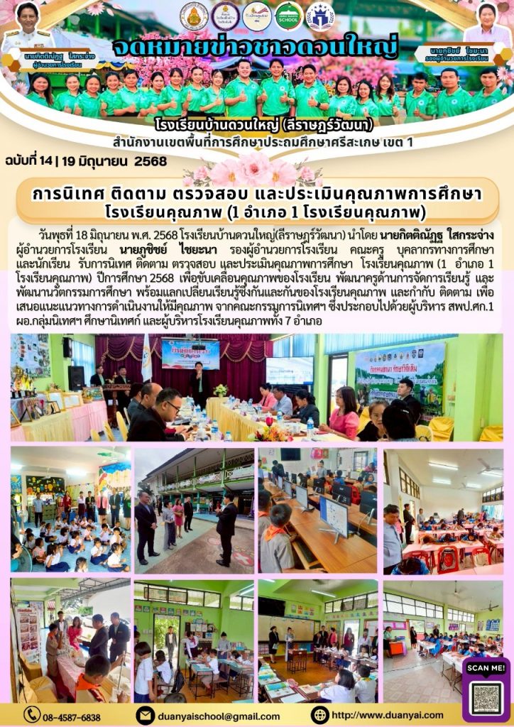 การนิเทศ ติดตาม ตรวจสอบและประเมินคุณภาพการศึกษา โรงเรียนคุณภาพ(1 อำเภอ 1 โรงเรียนคุณภาพ)