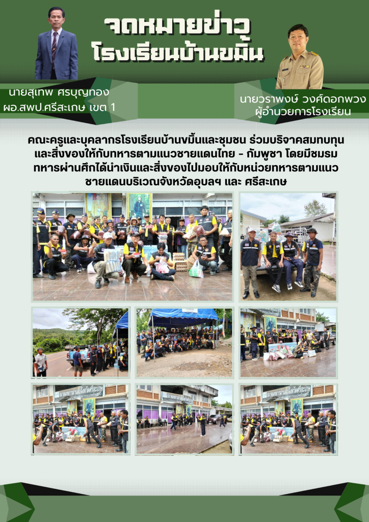 โรงเรียนบ้านขมิ้นสมทบทุนและสิ่งของทหารตามแนวชายแดน