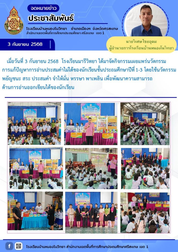 โรงเรียนมารีวิทยา ได้มาจัดกิจกรรมเผยแพร่นวัตกรรมการแก้ปัญหาการอ่านประสมคำไม่ได้ของนักเรียนชั้นประถมศึกษาปีที่ 1-3
