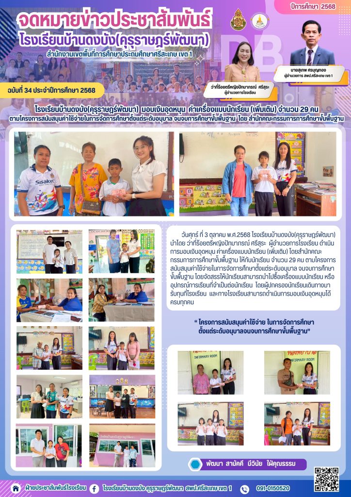 มอบเงินอุดหนุน ค่าเครื่องแบบ(เพิ่มเติม)