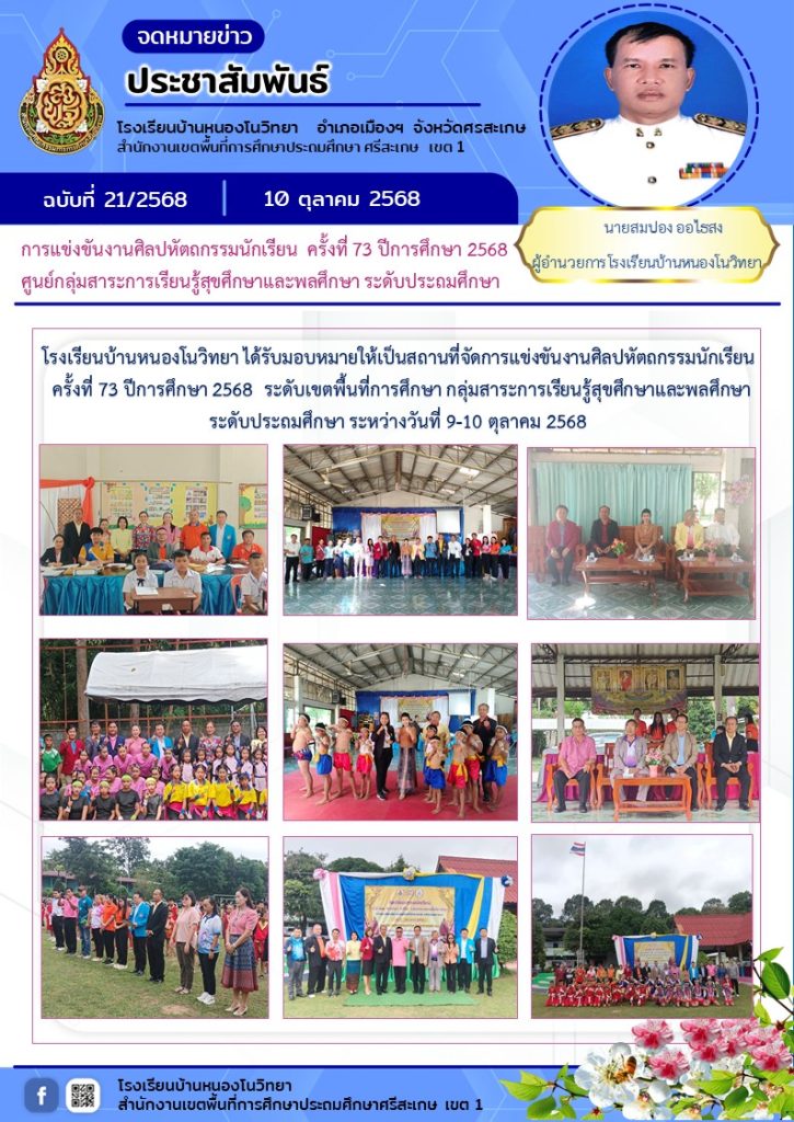 โรงเรียนบ้านหนองโนวิทยา ได้รับมอบหมายให้เป็นสถานที่จัดการแข่งขันงานศิลปหัตถกรรมนักเรียน
