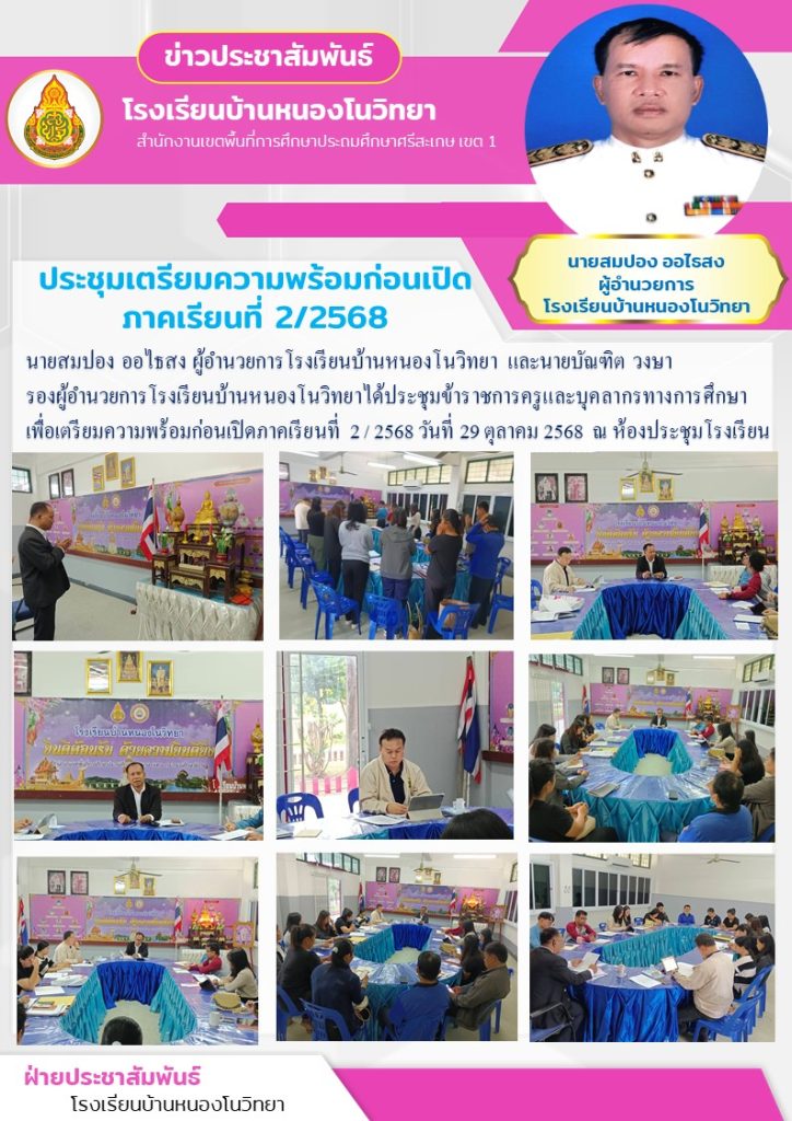 รองผู้อำนวยการโรงเรียนบ้านหนองโนวิทยาได้ประชุมข้าราชการครูและบุคลากรทางการศึกษา