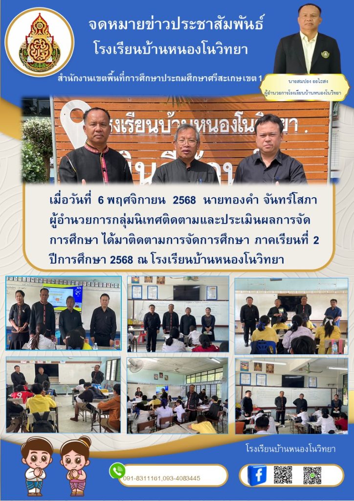 เมื่อวันที่ 6 พฤศจิกายน 2568 นายทองคำ จันทร์โสภา ผู้อำนวยการกลุ่มนิเทศติดตามและประเมินผลการจัดการศึกษา ได้มาติดตามการจัดการศึกษา ภาคเรียนที่ 2